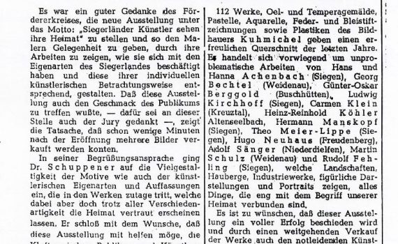 Siegerländer Künstler sehen ihre Heimat …-…1950 Hermann Kuhmichel · Hans Achenbach · Hanna Achenbach-Junemann · Günter-Oskar Berggold · Ludwig Kirchhoff · Carmen Klein · Heinz-Reinhold Köhler · Hermann Manskopf · Theo Meier-Lippe · Hugo Neuhaus · Adolf Saenger · Martin Schulz · Rudolf Fehling Siegen PDF-Download: 1950_ASK_Siegerländer_Künstler_sehen_ihre_Heimat Pressestimmen Tageszeitung […]