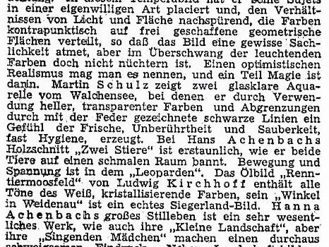 Winterausstellung Ludwig Kirchhoff · Martin Schulz · Hermann Manskopf · Theo Meier-Lippe · Hermann Kuhmichel · Gertrud Giebeler Siegen PDF-Download: 1958-11_ASK_Winterausstellung Pressestimmen Tageszeitung November 1958 Tageszeitung November 1958