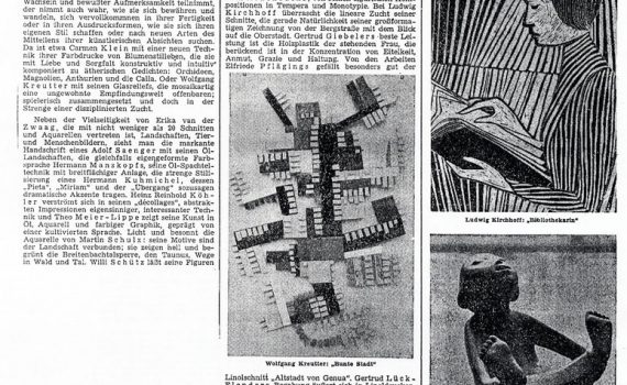 Winterausstellung Paul Werth · Marie-Luise Quadt · Josef Hegemann · Karl Tütelmann · Hermann Schweiger · Horst Jonath · Karl Haas · Lothar Kampmann · Heinz Dräger · Emil Schuhmacher · Theo Meier-Lippe · Wilhelm Wesse · H. Prüssmann · Heinz-Reinhold Köhler Leo Schule, Siegen PDF-Download: 1955-11_ASK_Winterausstellung Pressestimmen […]