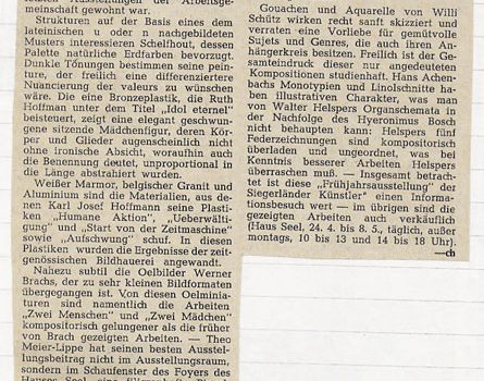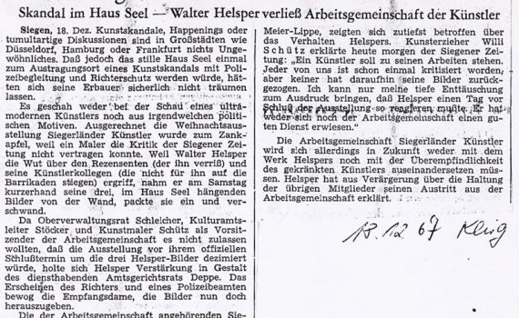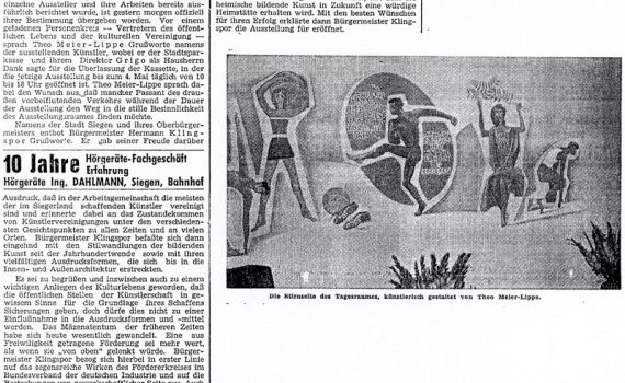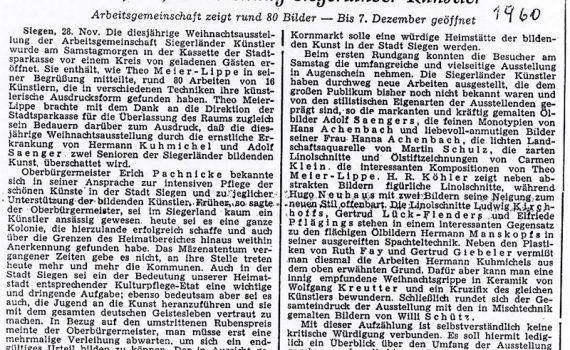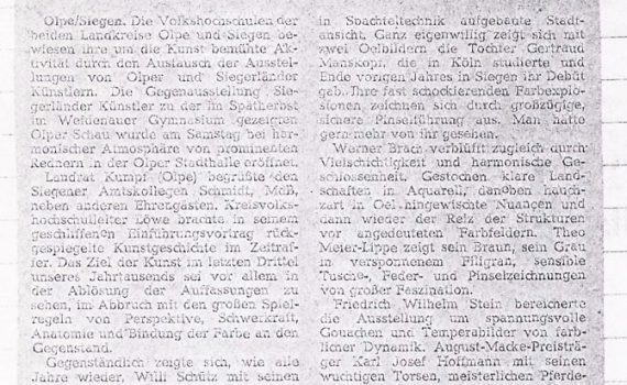 Winterausstellung 14.11. – 06.12.1964 Friedrich W. Stein · Wolfgang Kreutter · Ludwig Kirchhoff · Werner Brach · Theo Meier-Lippe · Hans Achenbach · Willi Schütz · Martin Schulz · Hermann Kuhmichel · Hanna Achenbach-Junemann Städtische Galerie Haus Seel, Siegen PDF-Download: 1964-11_ASK_Winterausstellung Pressestimmen Siegener Zeitung 28.11.1964 Westfälische Rundschau Nr. 277 […]