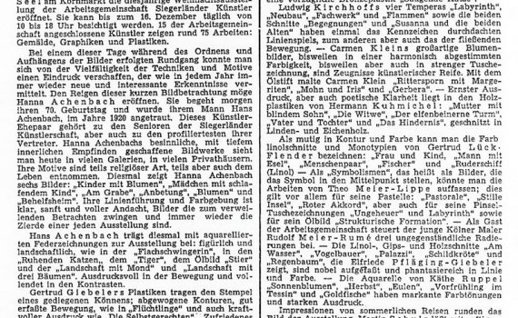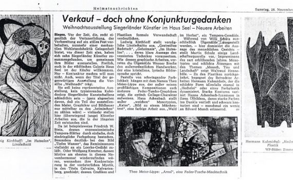 Weihnachtsausstellung 07.11. – 24.11.1968 Hanna Achenbach-Junemann · Wolfgang Kreutter … Städtische Galerie Haus Seel, Siegen PDF-Download: 1968-11_ASK_Weihnachtsausstellung Pressestimmen Siegener Zeitung 11.11.1968
