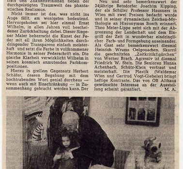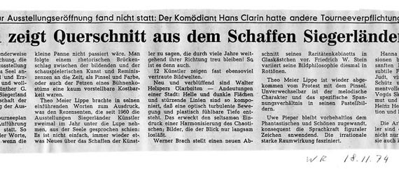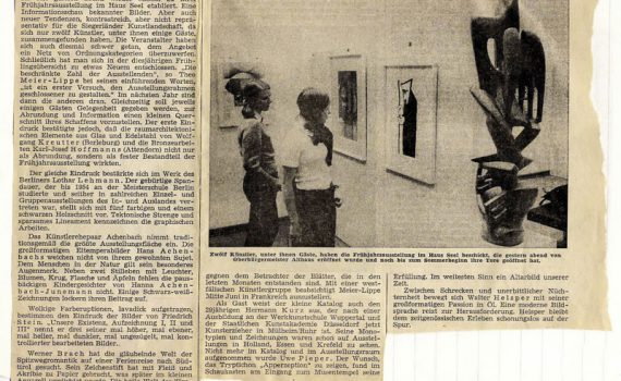 Frühjahrsausstellung 05.04. – 21.04.1974 Hanna Achenbach · Werner Brach · Walter Helsper · Wolfgang Kreutter · Heinz-Helmut Loos · Theo Meier-Lippe · Uwe Pieper · Helmut Riekel · Willi Schütz · Friedrich W. Stein · Gertrud Vogd-Giebeler Städtische Galerie Haus Seel, Siegen PDF-Download: 1974-04_ASK_Frühjahresausstellung Pressestimmen […]