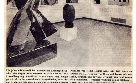 Dezember-Ausstellung 13.12. – 19.12.1971 Heinz-Helmut Loos · Horst Hoppek · Hans Achenbach · Hanna Achenbach-Junemann · Theo Meier-Lippe · Werner Brach · Friedrich W. Stein · Heinrich Wurm · Wolfgang Kreutter · Helmut Riekel · Walter Helsper Städtische Galerie Haus Seel, Siegen PDF-Download: 1971-12_ASK_Dezember-Ausstellung Pressestimmen Siegener Zeitung 04.12.1971 […]