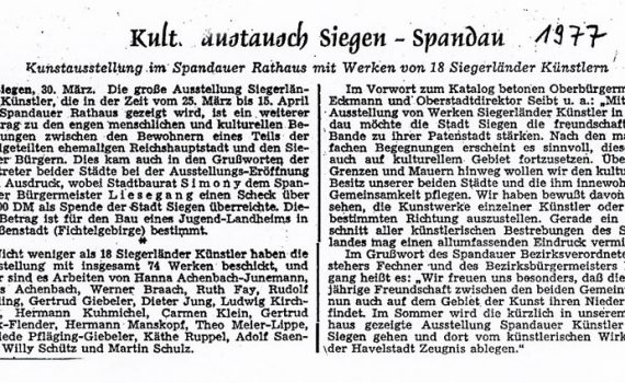 Spandauer Künstler 01.09. – 24.09.1978 Städtische Galerie Haus Seel, Siegen Kein dokumentarischer Eintrag