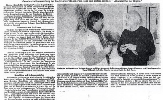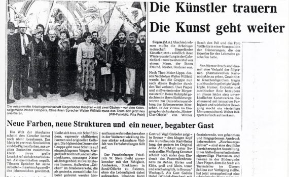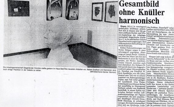 Winterausstellung 29.11. – 22.12.1985 Werner Brach · Elisabeth Jeck · Margaret Judt · Johannes Kotzi · Helmut Riekel · Tilmann Speicher · Wolfgang Kreutter · Friedrich W. Stein · Peter Sonnewende · Gertrud Vogd-Giebeler · Helmut Geis Städtische Galerie Haus Seel, Siegen PDF-Download: 1985-11_ASK_Winterausstellung Pressestimmen Siegener Zeitung 29.11.1985 […]