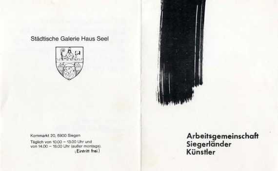 Frühjahrsausstellung 18.05. – 11.06.1989 Werner Brach · Helmut Conin · Walter Helsper · Elisabeth Jeck · Heinz-Helmut Loos · Tilmann Speicher · Friedrich W. Stein Gäste: Ulrich Bossmann · Paramonov · Werner Seekamp · Siegfried Fillmann · Karl Josef Hoffmann Städtische Galerie Haus Seel, Siegen […]