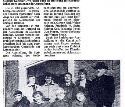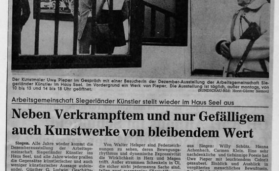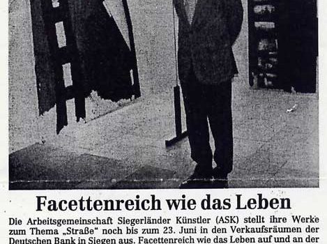 Arbeitsgemeinschaft Siegerländer Künstler 27.02. – 31.12.1993 Werner Brach · Helmut Geis · Karl Josef Hoffmann · Elisabeth Jeck · Margret Judt · Johannes Kotzi · Kai Reinschmidt · Helmut Riekel · Werner Seekamp · Friedrich W. Stein Im Haus der Siegerländer Wirtschaft 02.06. – 21.06.1993 Ute Poeppel · Helmut […]