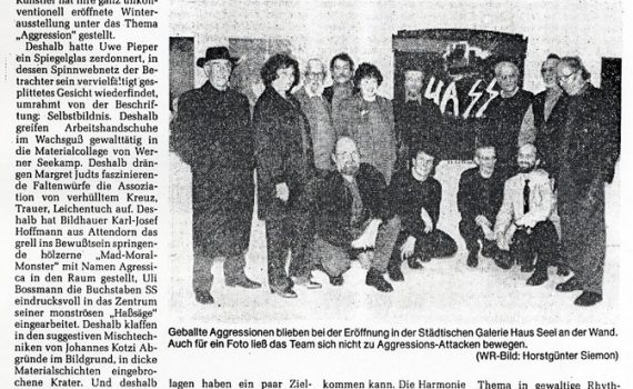 Aggressionen 28.11. – 22.12.1991 Uli Bossmann · Werner Brach · Helmut Geis · Gereon Heil · Margret Judt · Elisabeth Jeck · Uwe Pieper · Walter Helsper · Karl Josef Hoffmann · Johannes Kotzi · Helmut Riekel · Werner Seekamp · Friedrich W. Stein Gäste: Rudolf Bieler · Gereon Heil […]