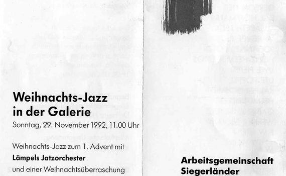 Winterausstellung 25.11. – 19.12.1993 Uli Bossmann · Werner Brach · Günter Hähner · Elisabeth Jeck · Margret Judt · Lutz Kringe · Johannes Kotzi · Christine Kühn · Ute Poeppel · Kai Reinschmidt · Helmut Riekel · Werner Seekamp · Nham-hee Völkel-Song Städtische Galerie Haus Seel, Siegen PDF-Download: 1993-11_ASK_Winterausstellung […]