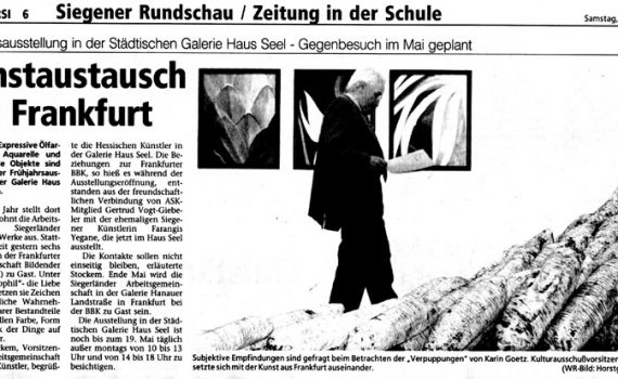 “biophil“ – die Liebe zum Leben – Frühjahrsausstellung 17.04. – 19.05.1997 Künstlerinnen des BBK Frankfurt zu Gast bei der ASK Ingeborg Seidel · Karin Goetz · Sibylle Spahlinger · Edith Monschauer · Frangis Yegane · Anne Simeth Städtische Galerie Haus Seel, Siegen PDF-Download: 1997-04_ASK_Frühjahresausstellung […]