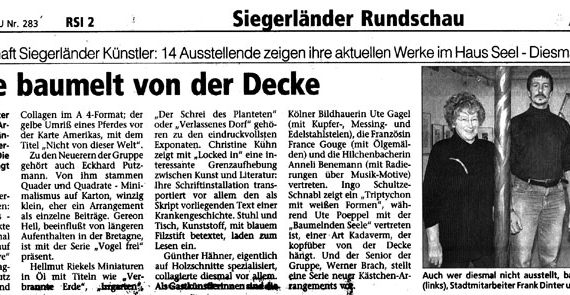 Winterausstellung 26.11. – 20.12.1998 Werner Seekamp Städtische Galerie Haus Seel, Siegen PDF-Download: 1998-11_ASK_Winterausstellung Pressestimmen Westfalenpost 27.11.1998 Siegener Zeitung 28.11.1998 Westfälische Rundschau 02.12.1998