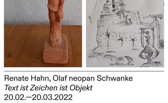 Renate Hahn, Olaf neopan SchwankeZeichnung, Skulptur 20.02.2022 Atelier Renate HahnObere Rote Hardt 3257334 Bad Laasphe Öffnungszeiten: 15 – 17 Uhr Information: 0151/70085748 * 02752/200331 * renatehahn@t-online.de Die Siegener Zeitung brachte am 18.2.2022 diesen Vorbericht zur Ausstellung: