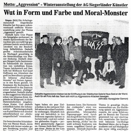 Die Collagen und Assemblagen von Michael G. Müller wecken Neugierde. Dafür sorgt allein schon der Titel seiner aktuellen Ausstellung „Zufälle und andere Befindlichkeiten“ im Foyer des RWE in Siegen. Dieser sagt nicht nur etwas über seine Arbeitsweise aus: das mehr oder weniger zufällige collagieren sehr unterschiedlicher Elemente zu Assemblagen und deren malerischer Überarbeitung. Der Titel soll auch als subtile Anspielung auf gesellschaftliche Befindlichkeiten und Aktualitäten verstanden werden: „Collage“ als Denkprinzip, als Ausdrucksform der Skepsis, des Hinterfragens menschlichen Tuns, denn in seiner Darstellungsform bleibt Müller nicht abstrakt. Ausgangspunkt und Inspiration jeder Arbeit ist das vorgefundene Fremdmaterial, das er überall im Alltag und an den unterschiedlichsten Orten entdeckt. Ganz aktuell sind seine aus alten Zeitschriften entdeckten Szenen verschiedener Sportarten. Es ist zunächst ein absichtsloses Vergnügen mit diesen Fundsachen – seinen „Befindlichkeiten“, die ihm gewissermaßen „zufallen“: ein Aufheben und Anhäufen von anregenden Materialfragmenten und für ihn nutzbar werdender Dinge.