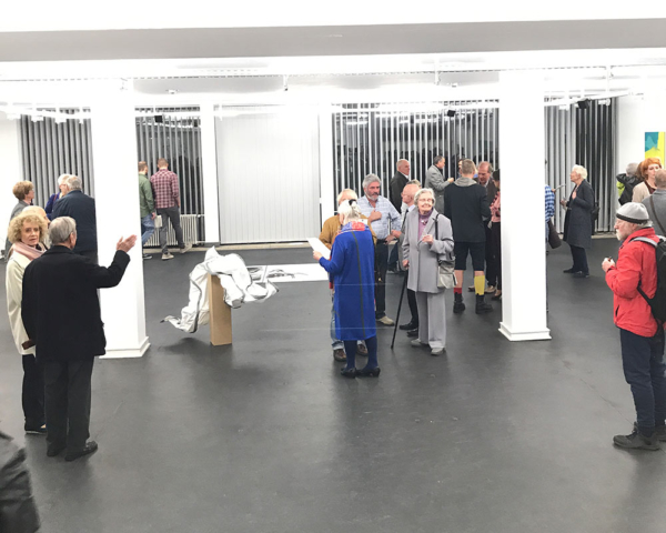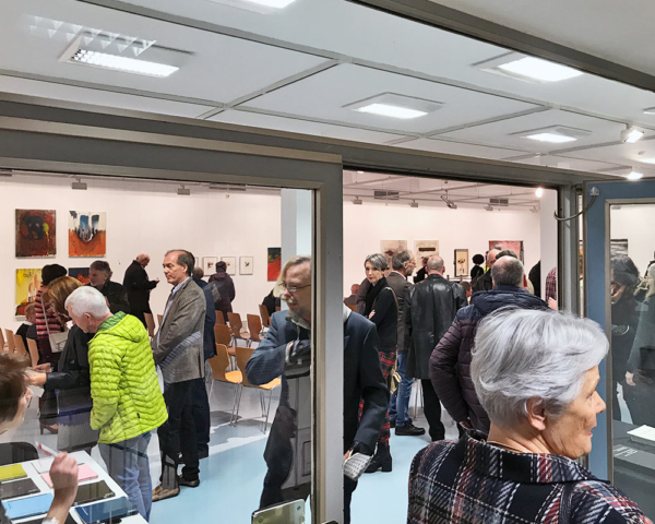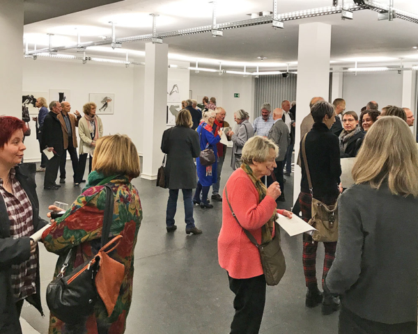 Sein Thema „Disruptive Entwicklungen“ passte hervorragend in den Kontext der Ausstellung: Die Winterausstellung der ASK ist der Rahmen, in dem traditionell die jährlichen Neuaufnahmen der Künstlergruppe sowie aktuelle Arbeitsergebnisse aus den Ateliers vorgestellt werden. Dies wird abgerundet mit der Vorstellung des aktuellen Grafikprojekts (Kalender und Mappenedition mit Originaldruckgrafik).