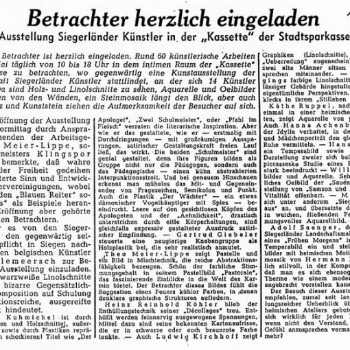 Hanna Achenbach · Werner Brach · Walter Helsper · Margret Judt · Joachim Kipping · Johannes Kotzi · Wolfgang Kreutter · Hans-Helmut Loos · Uwe Pieper · Helmut Riekel · Willi Schütz · Friedrich W. Stein · Gertrud Vogd-Giebeler