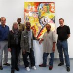 Nach einem ersten Zusammenkommen am Mittwoch trafen sich die Künstler aus Burkina Faso und dem Siegerland am Freitag, 21. September im Haus Seel. Abraham Abga, Bernadin Bationo und Jean-Luc Millogo gestalteten zusammen mit Helga Seekamp, Ingo Schultze-Schnabl und Kai-Uwe Körner ein großformatige Bild.