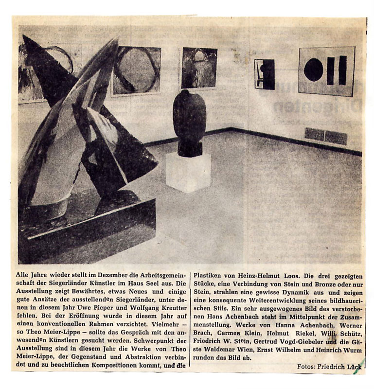 Dezember 1966 Winterausstellung 03.12. – 18.12.1966 Städtische Galerie Haus Seel, Siegen Kein dokumentarischer Eintrag